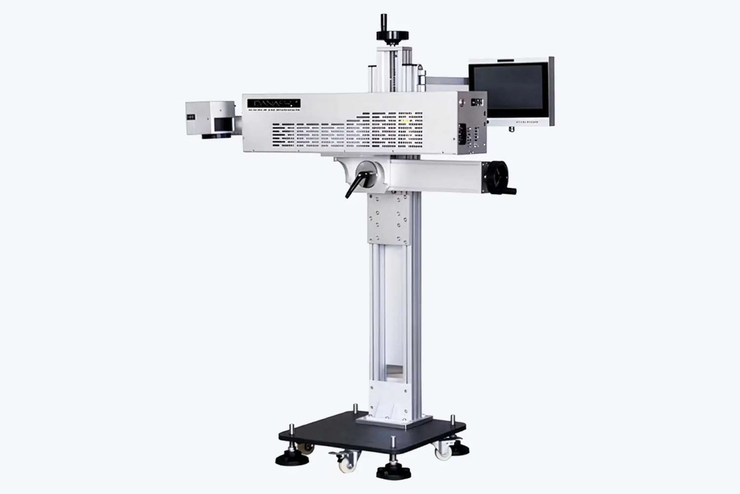 Интеллектуальная система управления с 10.1″ сенсорной панелью, поддержка Windows-шрифтов (SHX/TTF), импорт PLT/DXF/BMP/JPEG, авто-счётчики, даты/смены; интерфейсы RS-232, Ethernet (TCP/IP), USB, SD, I/O (NPN/PNP), энкодер и датчик продукта — всё для быстрой интеграции «на лету».